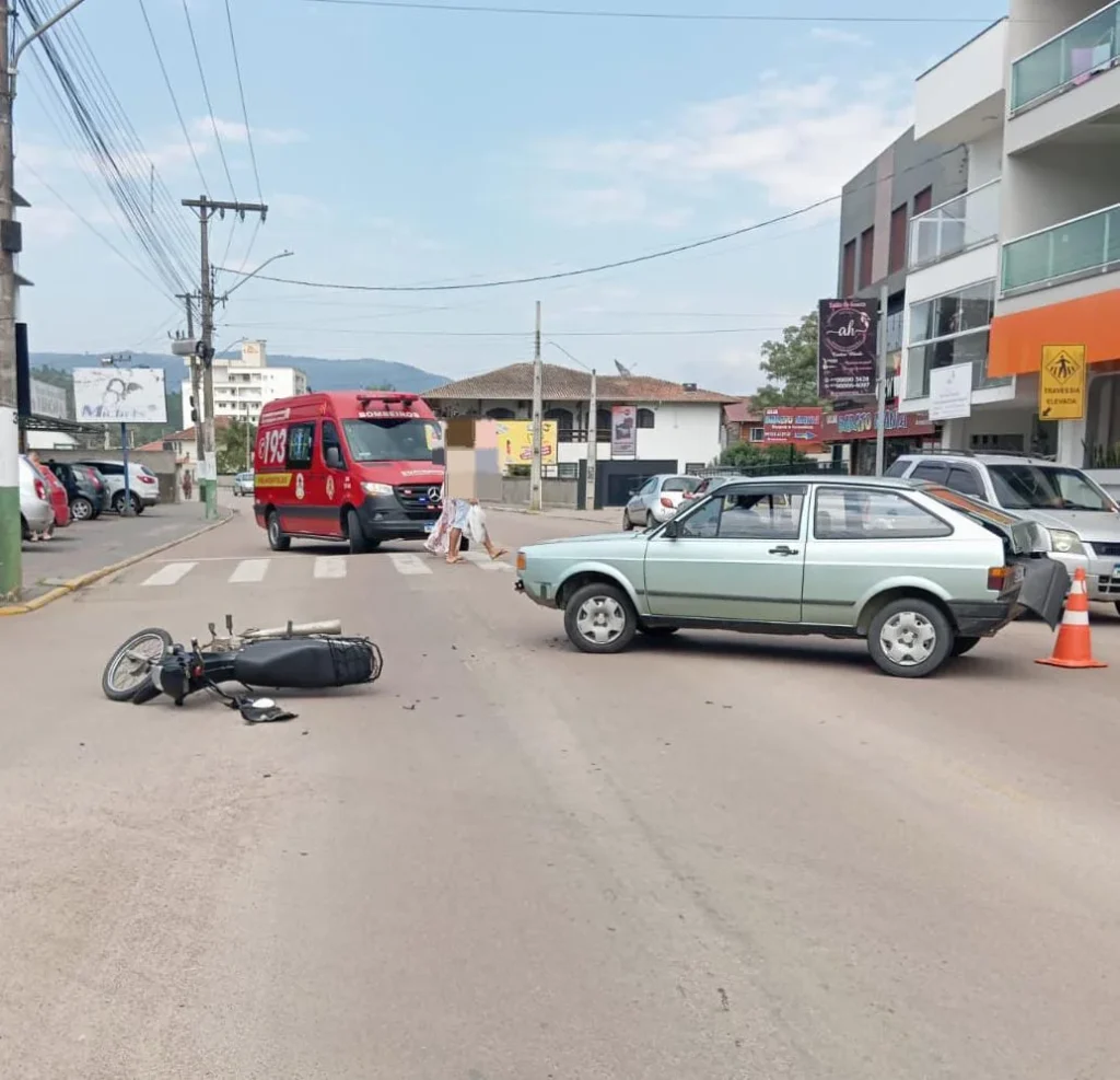 Cerca de dez minutos depois, às 10h10, uma nova ocorrência foi registrada na Rua Curt Hering, no Centro da cidade. A colisão entre um carro e uma motocicleta resultou em escoriações no motociclista, que foi conduzido ao Hospital Maria Auxiliadora. Os três ocupantes do automóvel não se feriram e recusaram encaminhamento ao hospital.