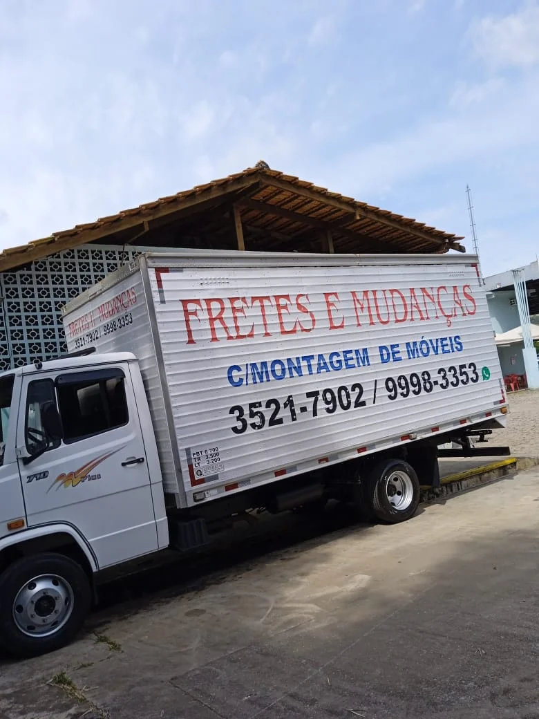 No baú do caminhão há a identificação com a frase “Fretes e Mudanças – Montagem de Móveis”, o que pode ajudar no reconhecimento do veículo.