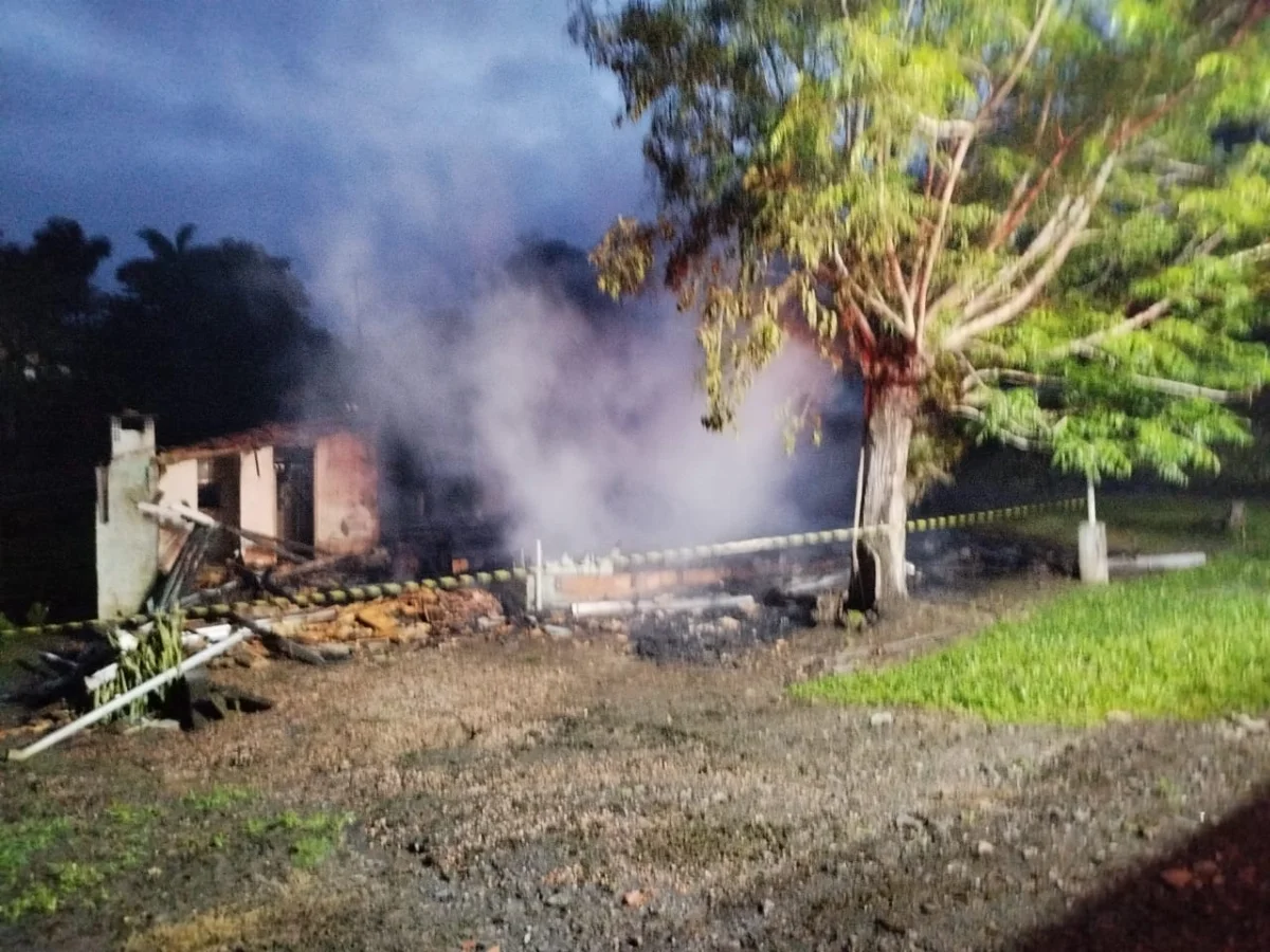 Um incêndio destruiu uma residência na madrugada deste sábado (8) na Estrada Geral da localidade de Figueiredo, no interior de Chapadão do Lageado. A ocorrência foi atendida pelo Corpo de Bombeiros por volta das 3h20.