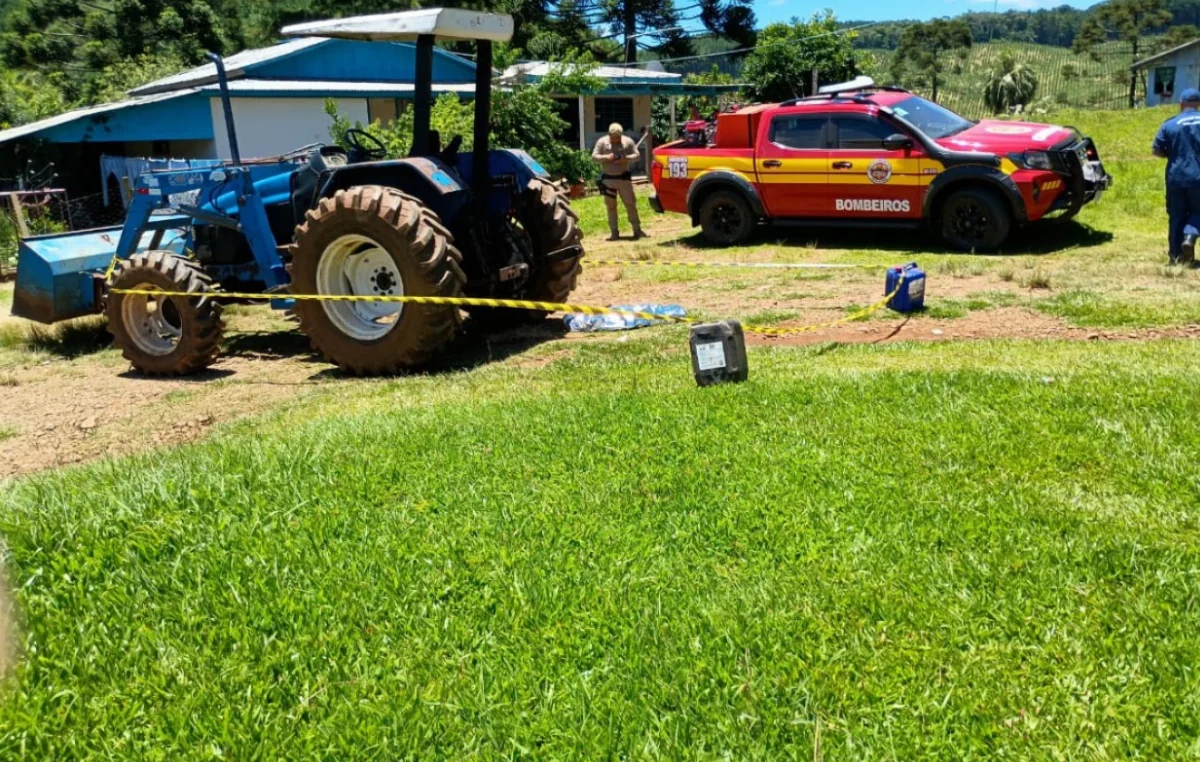 Em determinado momento, a criança de quatro anos perdeu o equilíbrio e caiu do trator. Logo depois, uma das rodas passou sobre a cabeça da vítima, causando ferimentos gravíssimos e incompatíveis com a vida.
